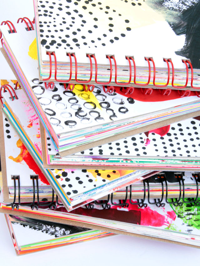 Remember a couple of weeks ago, when I shared a handful of my favorite watercolor techniques for any age? Well today I am sharing with you one of my favorite ways to put all that hand painted paper to use- making art journals.