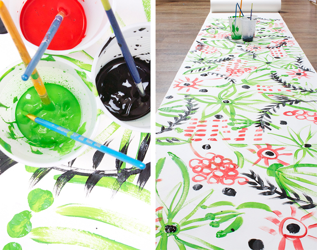 A staple supply in my studio year round is rolls of painter's paper. Most hardware stores have all kinds of rolls of paper to cover the floor when painting walls. This paper is wonderful for a variety of projects because a.) it's REALLY CHEAP b.) the surface can withstand all kinds of supplies and even layers of paint.