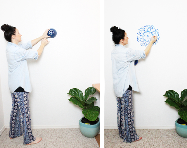 I knew right away that I wanted to paint a mandala inspired design. A mandala is actually really easy to create because it is simply a series of repeating designs in a circle. I don't get too crazy with measuring things out, I just start with a circle (I usually trace something round) and then go for it!