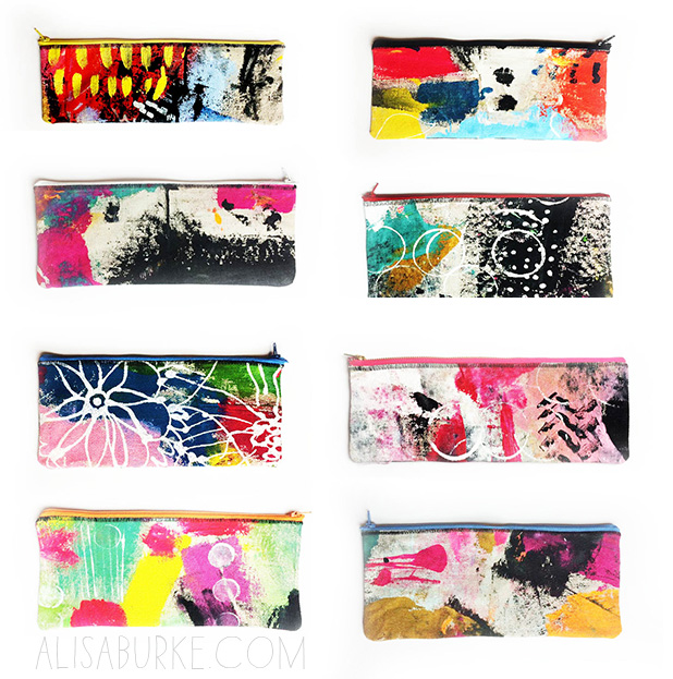 Once upon a time (like 10 years ago) I was attending a wedding. I was wearing a little black dress and needed a colorful clutch to finish off my outfit. I couldn't find anything I liked in stores so I grabbed one of my paintings from the wall, ripped it off the stretcher bars and sewed it into a clutch. This moment changed my entire creative perspective and my business forever!! I went on to write a book about remixing canvas, I taught classes on "redefining" your art and I sold thousands of handmade canvas bags. A few years ago I had to scale back on making bags- I just couldn't keep up with the demand . These days I still make them just in smaller quantities and I am happy to announce that I have a big batch in the shop HERE