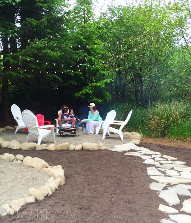 We created a fire pit in the back corner of the yard. This is the area where the ground slopes down the most and it seemed like a great space to add a fire pit for hanging out. I'll be sharing more details about this space later this week.
