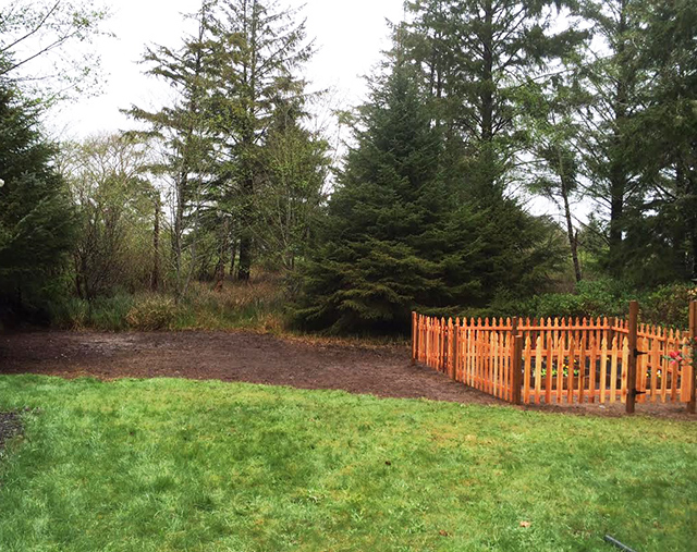 We put in a flagstone path, dividing up the space that leads to a fire pit.