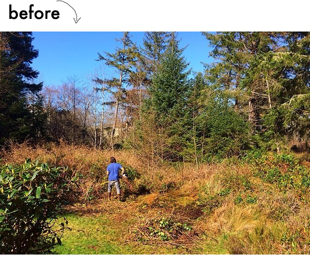 After we finished the garden back in April we had decisions to make about the rest of the space and we went back and forth about what to do. Since the yard slopes into wetlands and since we have soil that is full of clay, we are limited with what can be done. We finally decided to keep things simple and split the space up into a few different areas.