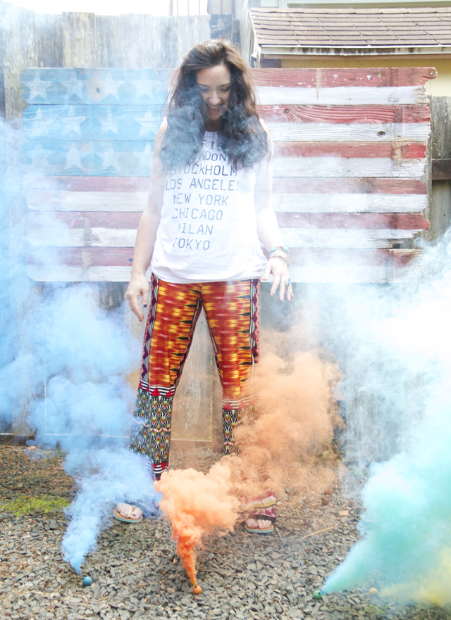 I love barn quilts and wanted to put my twist on the concept to create a colorful statement piece that could hang at the top of the shed. I used a scrap piece of plywood and painted colorful blocks. I love how much POP this adds to the space!