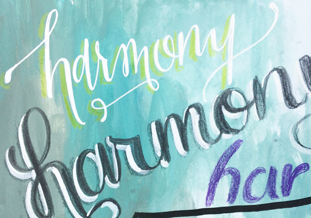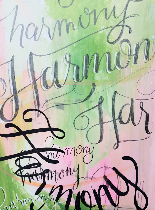 I chose the word "harmony" for this example because it has a wide variety of letters in it, giving the combinations of these letters tons of possibilities! Here are just a few of my variations (with some tips below)